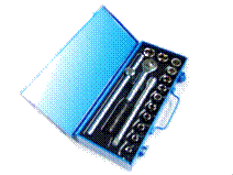 ratchet handle, sliding T-handle, extension L-215 1/2“ sockets: 8, 9, 10, 11, 12, 13, 15, 15, 17, 19, 22, 24 |